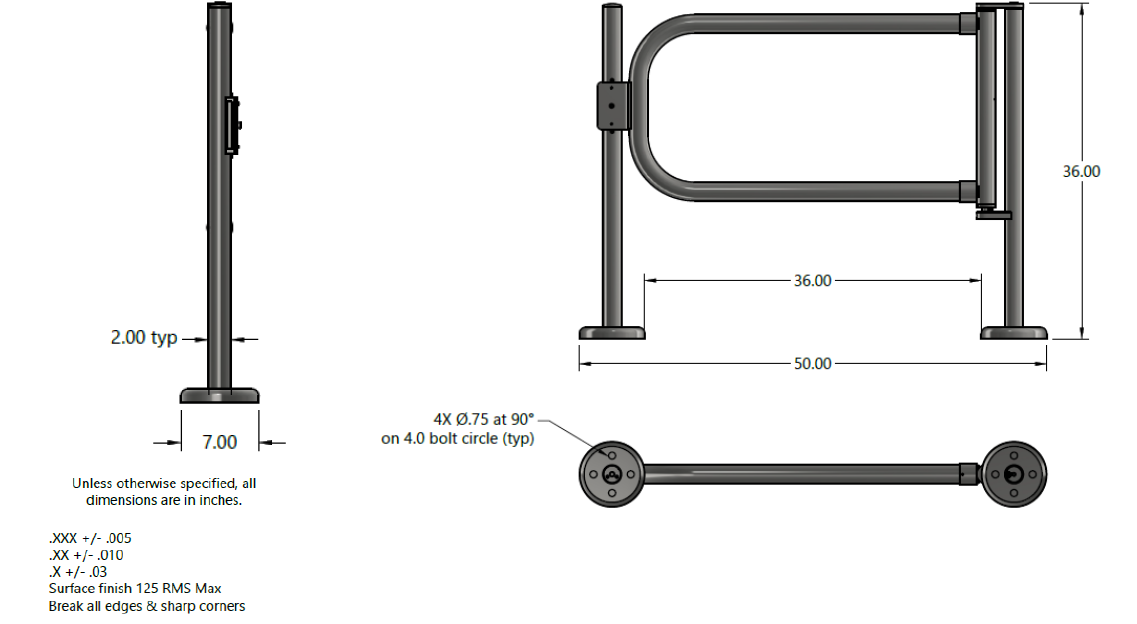 - 36″ ADA clear opening (custom widths available from tip-to-tail 20″ to 60″)